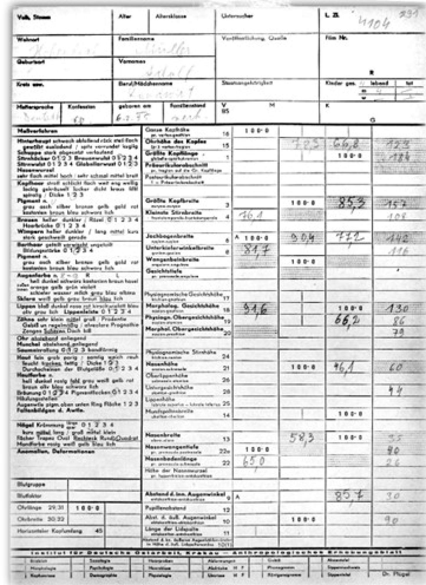 Täglich wartet er auf Antwort vom Rassenamt SS. Nachfragen ist sinnlos. Alle haben zu tun. Es heißt erst einmal, weiter Messblatt für Messblatt auszufüllen. Schädelzeichnungen anzufertigen und Volkstum nach arischer Substanz zu durchforschen. Das Material häuft sich. Erste Kisten werden nach Krakau in die Burg transportiert und eingelagert. Fitzi, nun Dr. Fliethmann, ist abkommandiert in die Entlausungsanstalt, ins jüdische Ghetto nach Tarnow. Ihr Vorschlag, Messungen hier vorzunehmen wurde bewilligt. Leider wird ihr das Material unter den Händen weggezogen, ins Unbekannte deportiert. „So schnell kann ich gar nicht messen, wie die Juden verschwinden“, klagt sie in einem Brief an Herrn P. Jedenfalls muss sie sich nicht mehr die Füße wundlaufen. Das Material kommt zu ihr, nicht anders herum.