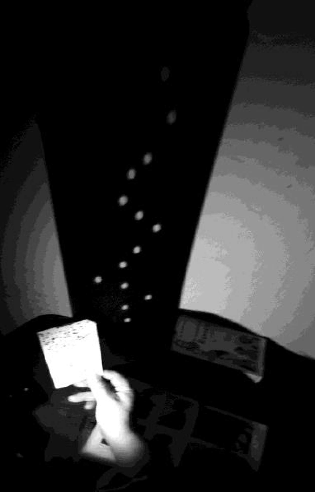 P. packt seinen Koffer. Seine Lochkarten mit den hübschen Mustern nimmt er mit. Viele sind es über die Zeit geworden. Eine schöne Sammlung. Vielleicht kann er ja später an seinem Projekt weiter arbeiten. Herr P. schaut sich noch einmal im Raum um. In seiner Erinnerung flammt der Moment auf, als der Schatten einer Lochkarte, mit dem Muster aus Lichtpunkten die Wand tapezierte. Wie ein Kind, staunend unterm Sternenzelt.
